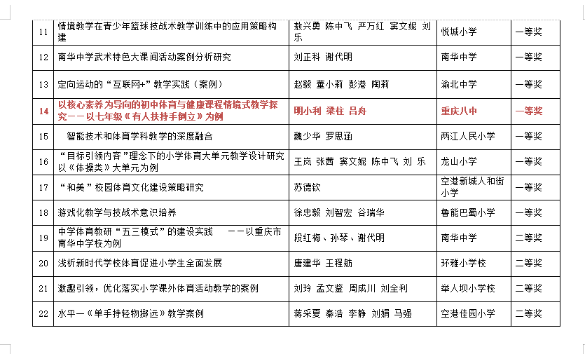 重庆八中多名体育教师获得论文评选一等奖