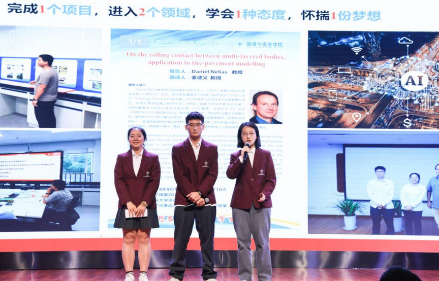 渝北校区第十二期“雏鹰计划”项目学员分别对《基于三-(8-羟基喹啉)铝微米晶体构建电致化学发光生物传感器用于检测啶虫脒》、《纳米前沿科技走进中学的化学思维培养的研学模式探索》、《基于多源监测数据的滑坡稳定性智能动态预测研究》、《GdF3:Tb3+荧光探针的制备、性质及其在Fe3+检测中的应用研究》等4个雏鹰计划项目进行了中期汇报。