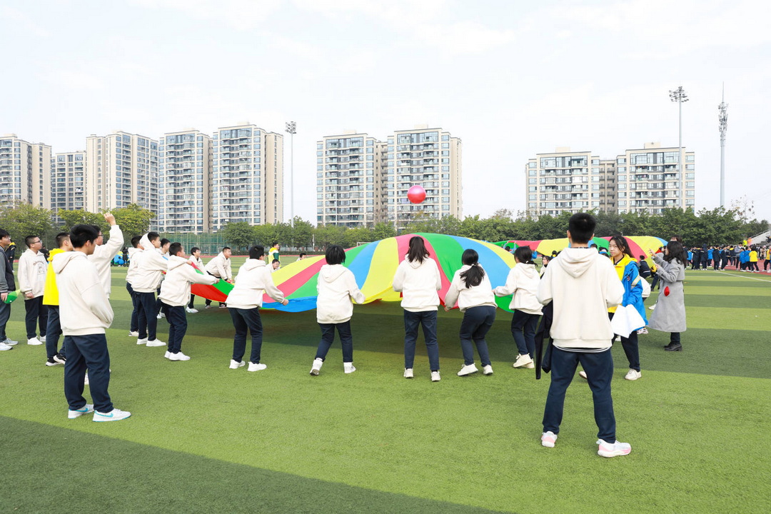 为丰富同学们的课余生活,提倡健康生活的理念,2023年12月8日,重庆八中渝北校区初2026级和初2025级全体学生在渝北校区田径场行了“趣”享运动、“味”你喝彩的趣味运动会。老师们和同学们对本次趣味运动会充满了期望。在开幕式上32个班级各显神通,体现“趣味”主题,为此运动会增添了浓墨重彩的一笔。