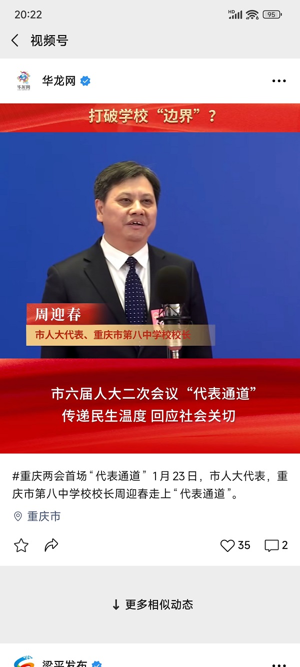 华龙网——#重庆两会首场“代表通道” 1月23日,市人大代表,重庆市第八中学校校长周迎春走上“代表通道”。