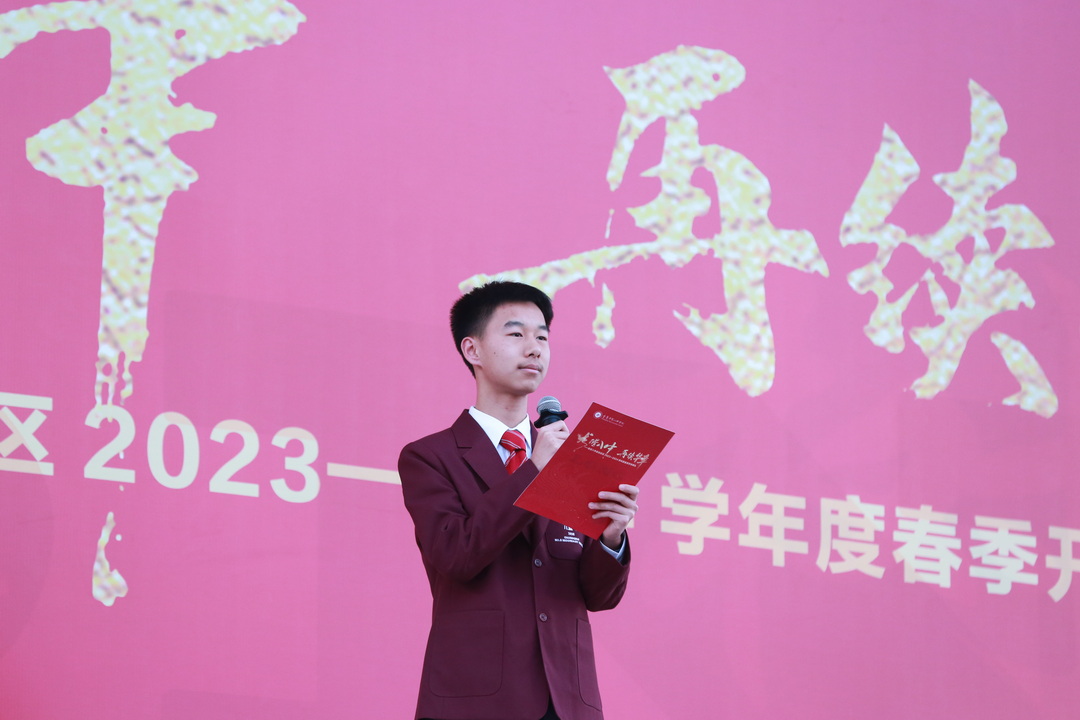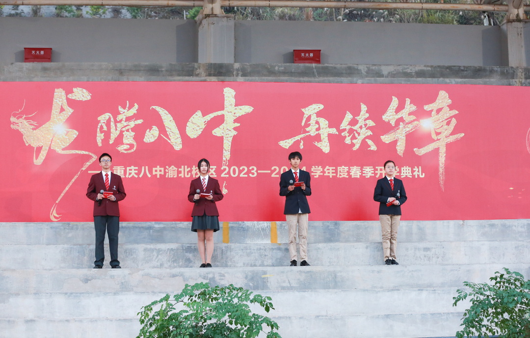一年一度春草绿,正是杨帆追梦时。2月19日清晨,重庆八中渝北校区全体师生踏着春天的脚步,迎来了“龙腾八中,再续华章”2023-2024学年度春季开学典礼。本次活动由高2026级5班廖晨希、高2026级5班李晋逸、初2025级3班邓其景、初2026级6班李子淇4名同学主持。