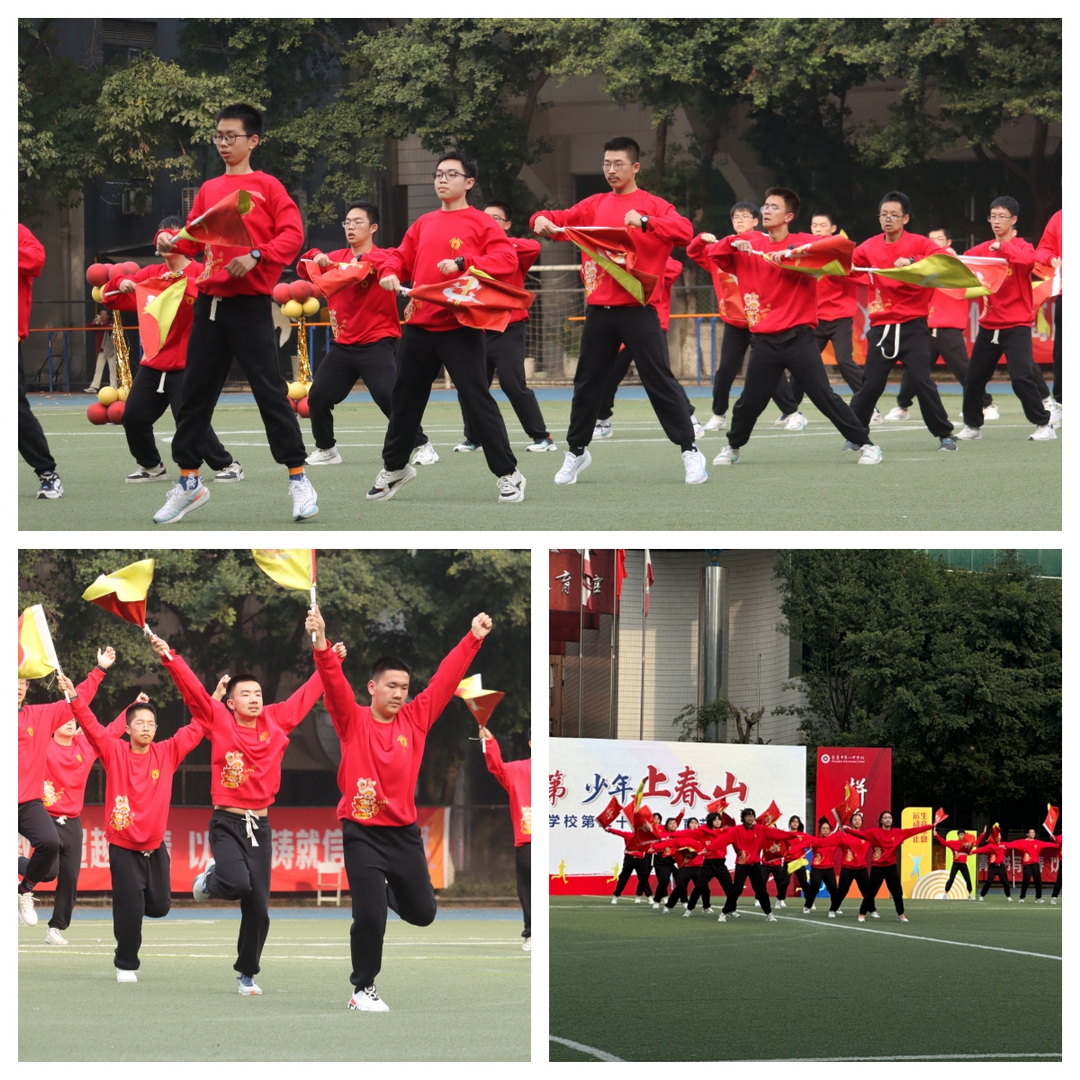 31班的同学们,衣着红色卫衣,手持明黄花球。流利的动作,默契的配合,他们如焰火,尽情燃烧着青春,也调动起观赛现场的热烈氛围。同学们的表演,赢得在场师生的阵阵掌声。