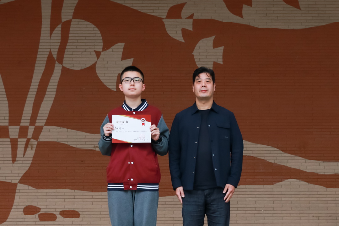 朝会最后,校长卿知人老师为岳锦玉老师颁发“朝会大讲堂荣誉讲师”证书,学生处副主任杜钦之老师为李雨柯同学颁发“朝会大讲堂发言人”证书。