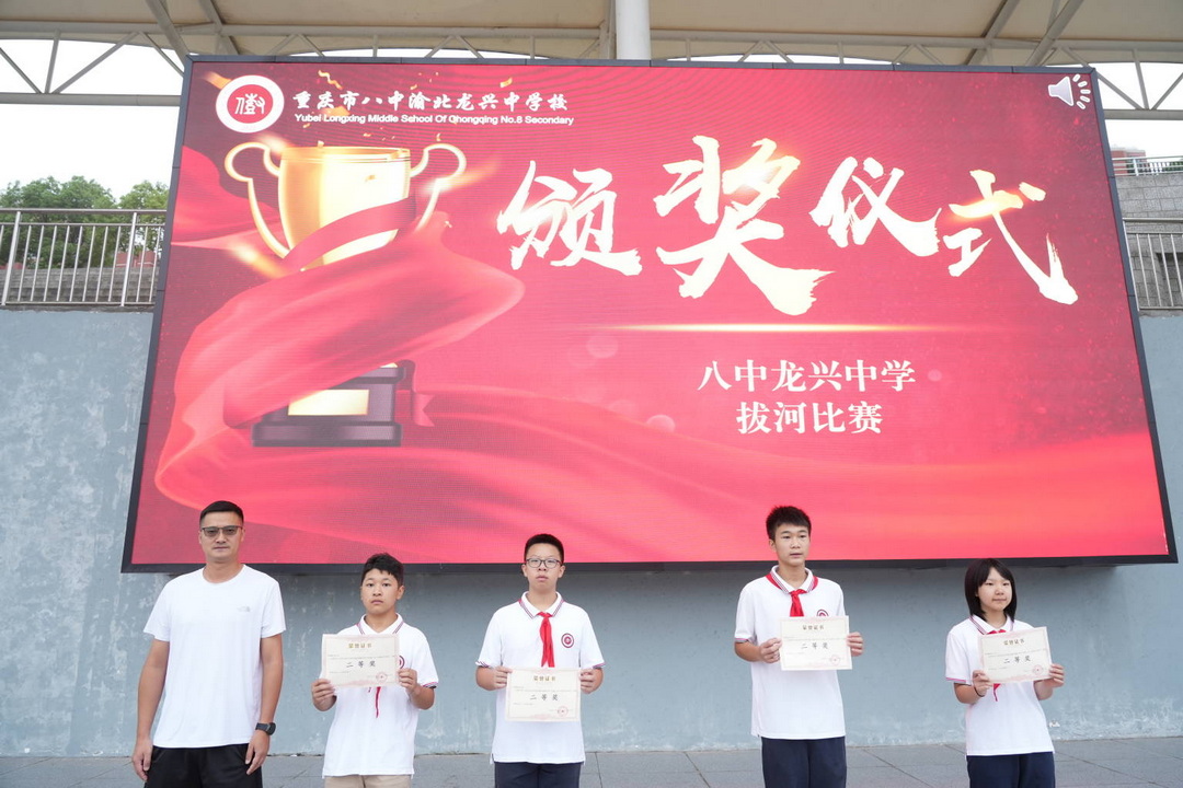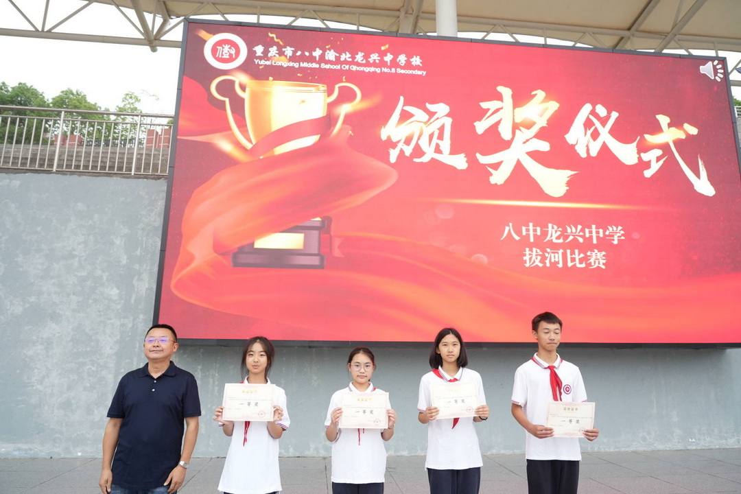 “聚阳才能生焰,拢指方能成拳。”为丰富我校师生的校园文化生活,增强综合素质,培养团队协作能力和集体荣誉感,展现班集体风采,发扬上下齐心、拧成一股绳的团队精神,营造积极向上的校园氛围。由体卫处牵头,与七年级年级组共同组织的八中龙兴中学2023-2024学年度下期拔河比赛于6月13日顺利完赛,并于6月17日升旗仪式中举行了颁奖仪式。