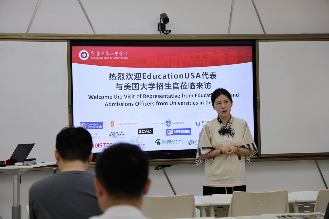2024年10月9日,为积极探索与美国大学招生官建立更加紧密的联系。美国驻华大使馆EducationUSA携来自美国12所知名高等学府的15位杰出招生官跨越重洋,亲临我校,在我校国际部主任周荧、副主任王谞、以及生涯规划团队教师的陪同下,不仅深度探访了学校的悠久历史与文化底蕴,更在国际部活动教室为教师们献上了一场关于生涯规划与美国大学录取政策的精彩讲座,为留学路上的我们点亮了前行的灯塔。