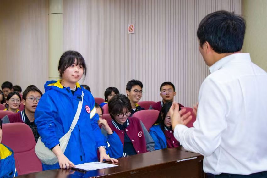 随后,王强老师为同学们进行了《呵护心理健康,携手齐心同行——重庆八中2024-2025学年度心理委员培训》专题分享,面向心理委员提出了四个角色和四种能力。曹贵康教授为同学们进行了心理健康的讲座培训,通过案例分析、沉浸式体验、角色扮演等互动方式,让同学们全方位参与到心理委员培训中。