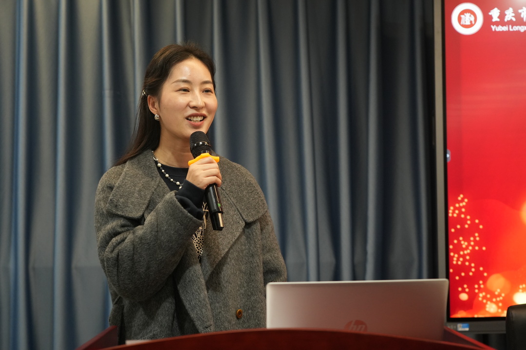 随后,王昭媚老师为全体教职工带来了“国培计划——重庆市培训团队教学数字化应用指导能力培训”的汇报。她从人口负增长、未来教育、数字原住民以及硅基技术四个关键词入手,深入浅出地为教师们剖析了当前教育领域的变革与挑战,并分享了数字化教学应用的前沿理念和实践经验,为教师们提供了宝贵的启示和思考。