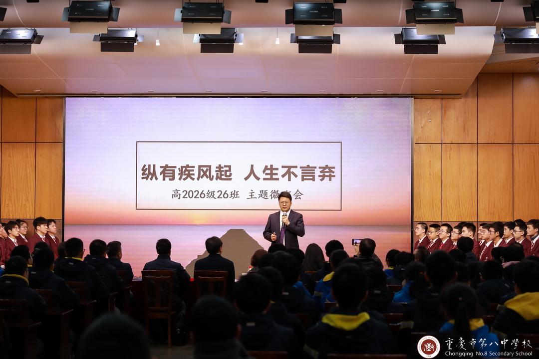 周健老师和高2026级26班的同学们开展的微班会主题为《纵有疾风起,人生不言弃》。他们共同探讨了当今社会竞争日益激烈的情况下,该如何认识和看待挫折的问题。周健老师结合同学们身边的日常案例,帮助学生认识到每个人都会遇到挫折,重要的是如何面对和克服这些挫折。随后,周健老师,通过“击打”玩偶的互动游戏,帮助同学们感悟挫折以及学会如何从挫折中汲取成长的力量。最后,通过分享叶泽坤、雷军两个典型的人物案例,增强了学生应对挫折的自信心和自我效能感,让他们相信即使遭遇失败也能找到成功的道路。