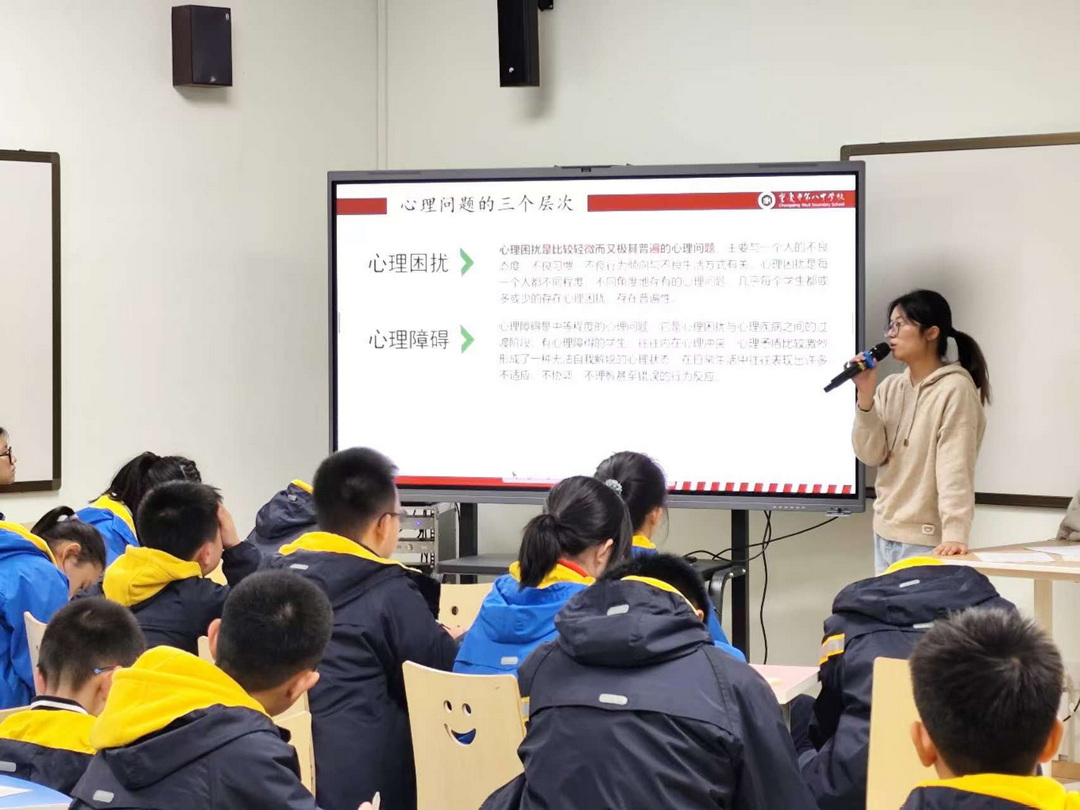 为进一步提升心理委员的专业素养与服务能力,为校园心理健康建设注入新的活力,重庆八中学生心理与生涯发展指导中心组织了一场心理委员培训活动。培训活动由重庆八中专职心理老师段彦琳主讲。重庆八中渝北校区初一至初三年级各班的心理委员参加。