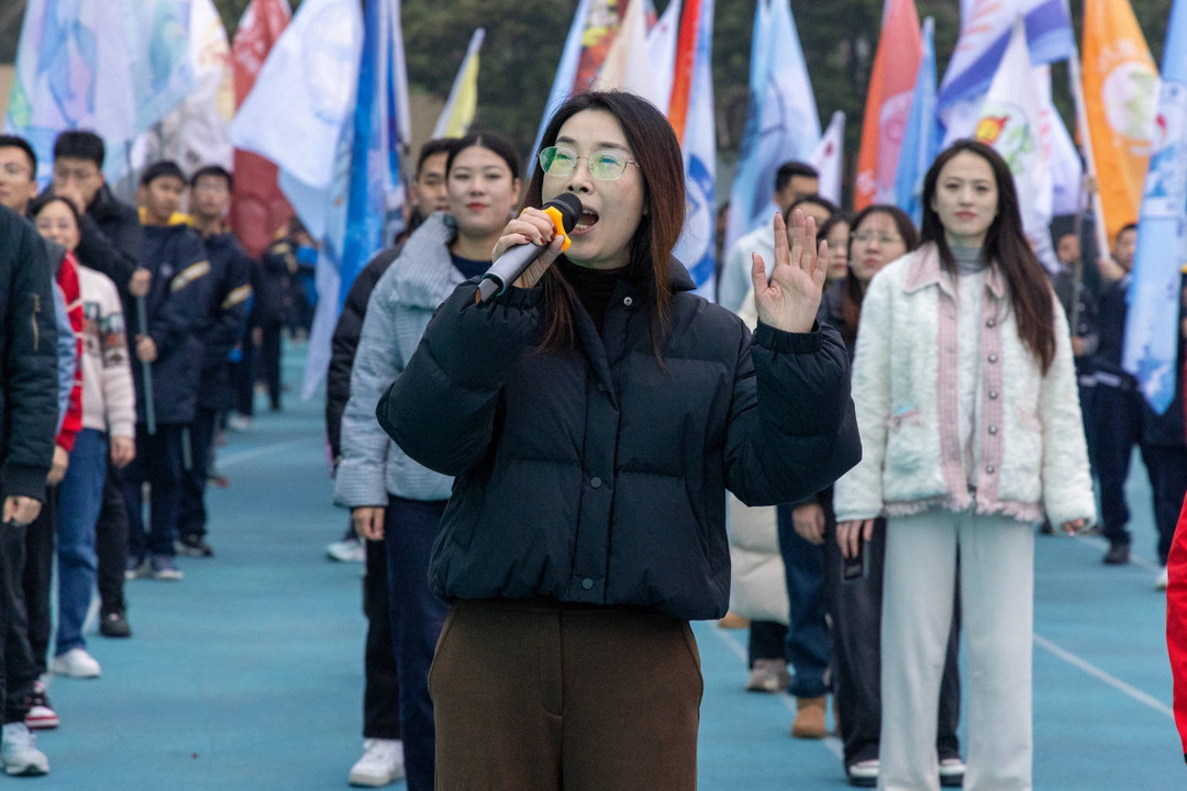 重庆八中宏帆中学副校长刘剑平与周道碧那铿锵有力的声音,宣告着长跑正式启动的瞬间,整个校园仿佛被注入了无穷活力。校长团队和班主任方阵率先迈出坚定步伐,他们身姿挺拔,步伐稳健,展现出引领者的风范。旗手方阵高擎旗帜,旗帜在风中烈烈作响,似在为这场逐梦之行呐喊助威。而学生方阵则如汹涌的浪潮,朝气蓬勃,青春的气息弥漫在校园的每个角落。