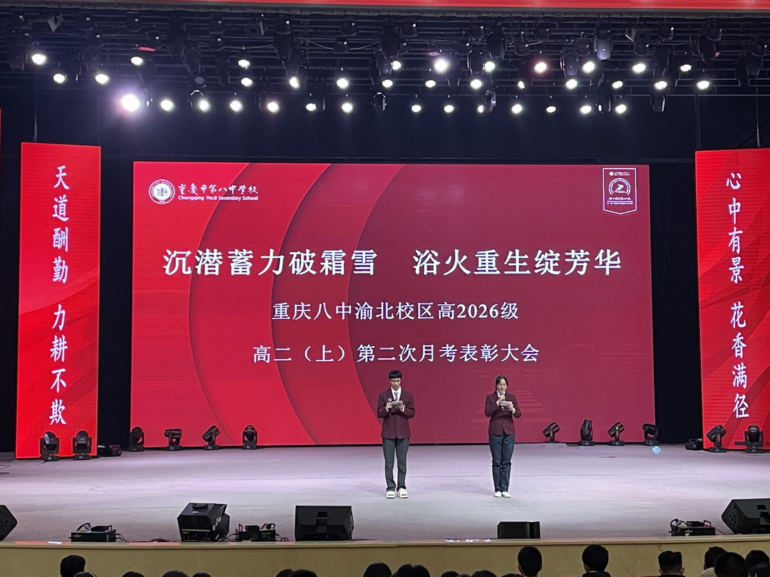 2024年12月17日,重庆八中渝北校区高2026级全体师生相聚大礼堂开展第二次月考表彰大会。这不仅是为那些成绩优异的同学喝彩,更是为了激励每一位同学继续向着更高的目标前行。