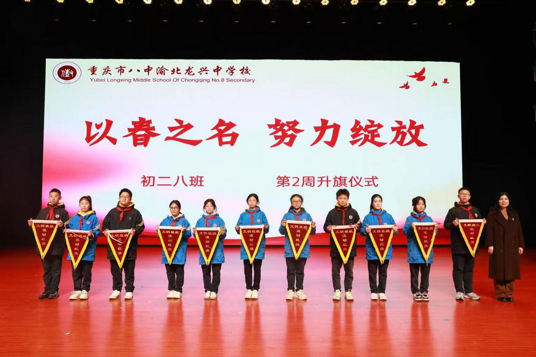 以春之名,努力绽放——重庆市八中渝北龙兴中学校2024-2025(下)第二周升旗仪式