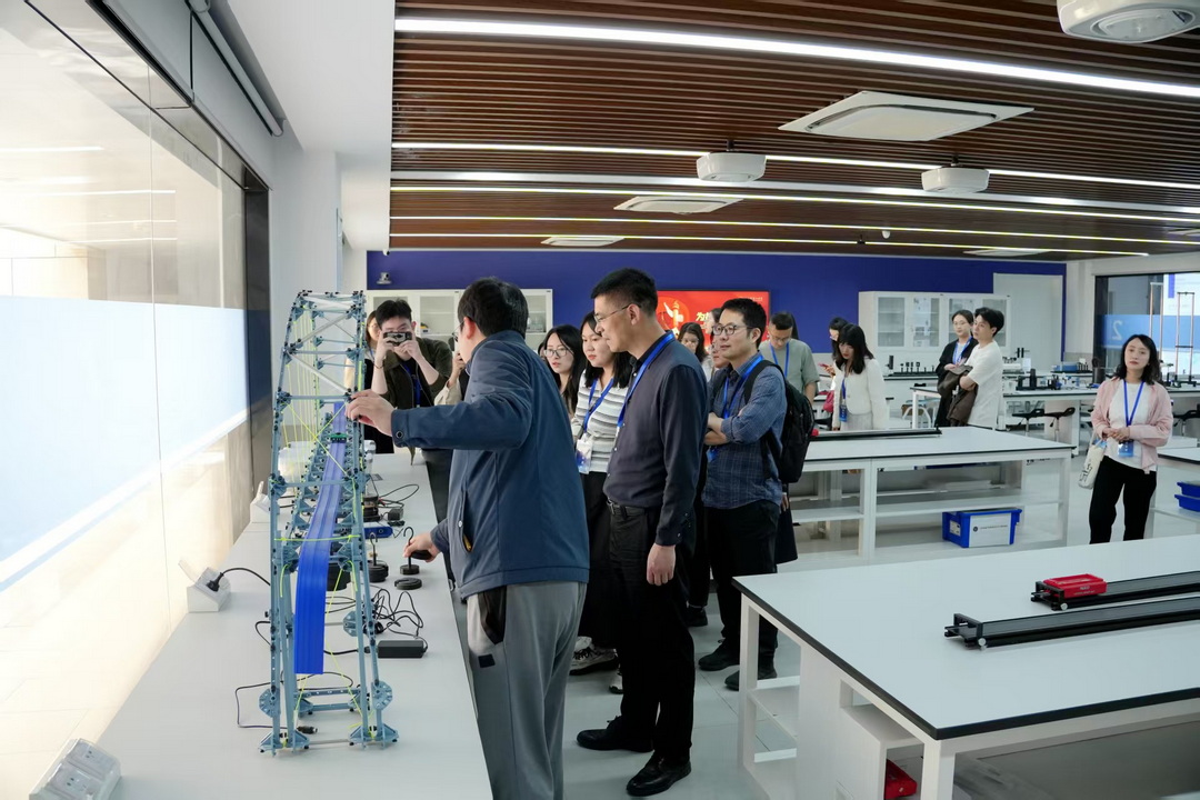 南京市第一中学,秉持三全办学理念“成全人、成全人、全成人”,着重开展科学教育。我们一行参观了物理课程基地运动场和智造社,见识了现代化、科技感满满的物理模拟实验、桥梁结构模型、化学纤维材料等。学校还建有傅科摆实验场地、攀岩场地、呐喊喷泉等,让科学实践研究随处悄然发生。很多通道和公共场域打造成科学文化长廊,丰富生动的展示著名的科学家事迹和科普知识。南京一中多举措、全场域开展科学+教育,让学生沉浸式体验科学,得到科学文化的熏陶,实现了让学生在“做中学、创中学、思中学”。
