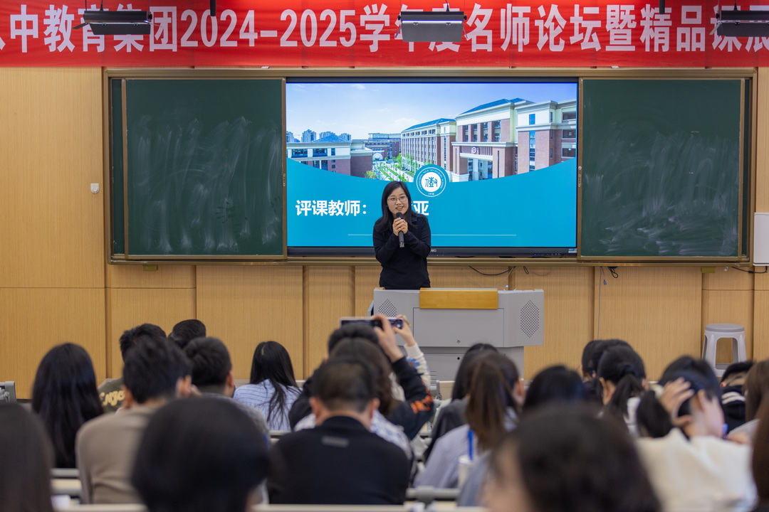 树人校区初三年级备课组长黄义玲老师从专业角度对高瑜老师的课堂进行了深度点评。黄义玲老师首先高度赞扬了这堂课,认为高瑜老师这堂课对初三教学和中考备考具有重要的指导意义。接着黄义玲老师指出本课的课程亮点,一是教学目标明确,聚焦核心考点。高瑜老师以中共中央、国务院印发的农业强国规划和中央一号文件为热点,时效性强。教学环节清晰,通过有效设问激发学生思考,让学生理解乡村振兴是全产业链振兴,坚持以人民为中心。在分析三大产业发展问题及解决措施时贯穿多个中考考点,落实课标学段目标,培养学生五大素养。此外,还应用新技术畅想2035年美丽乡村图景,体现AI+教育融合理念。二是课程具有结构化思维。高瑜老师通过情景创设、任务设计和学科内容结构化,引导学生从感性认识上升到理性构建,情景设计从宏观到微观再回到宏观,知识分析跨课、跨单元、跨年级、跨板块,将中考导向落实到位。