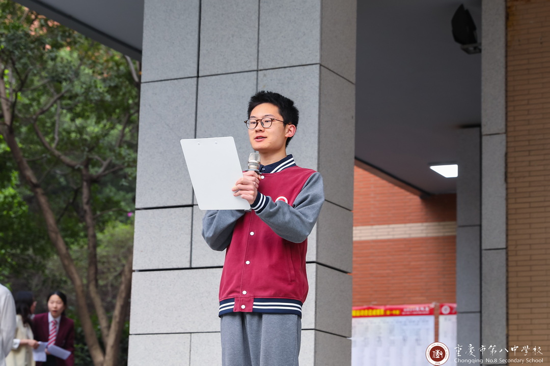2025年4月14日,重庆八中沙坪坝校区第九周朝会顺利进行。本次朝会主题为“科技创新:青年的责任与担当”,旨在激发同学们科技创新的兴趣,使他们成长为有担当的新时代好青年。本次朝会由高2026级31班陈卓同学主持。