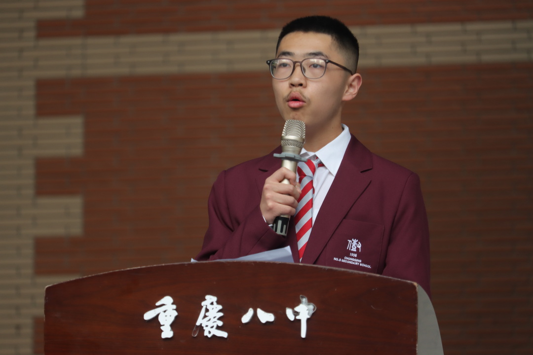 2025年4月21日,重庆八中沙坪坝校区第十周朝会顺利进行,此次朝会旨在引导同学们科学备考,以良好的心态迎战半期考。本次朝会由高2026级31班陈卓同学主持。