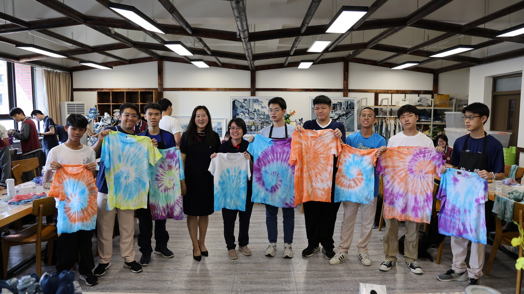 20日上午,在八中艺术教师王欢的悉心指导下,华侨中学的师生们亲身体验了扎染艺术的独特魅力。从设计图案到染色制作,每一个步骤都充满了乐趣和惊喜,大家沉浸在艺术的海洋中,感受着中国传统文化的博大精深。