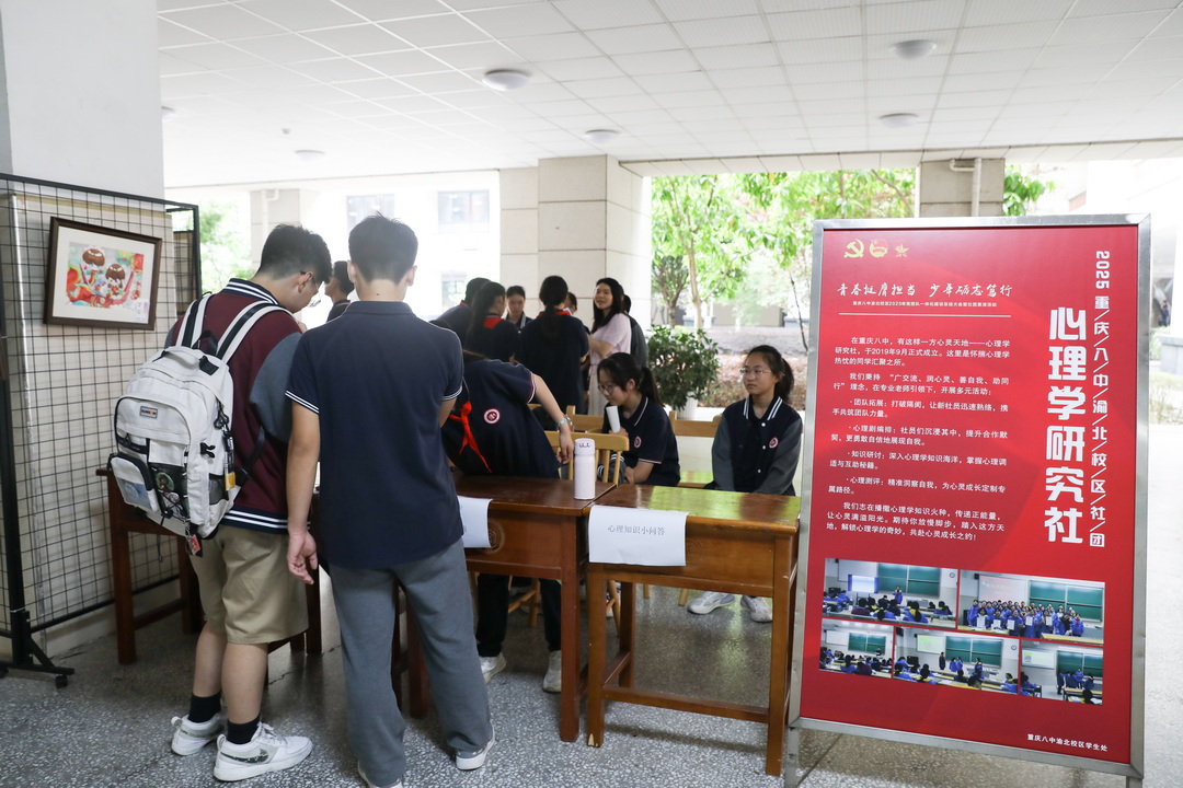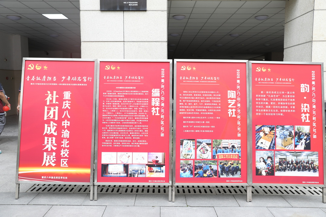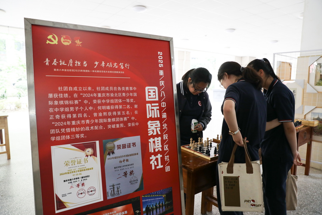 为充分展示学生社团风采,丰富校园文化生活,5月16日下午,重庆八中渝北校区2025年社团成果展在第二、三教学楼底楼盛大举行。国际象棋社、科学实验社、摄影社、云墨坊、模拟联合国社、青岚汉服社、心理社等多个社团齐聚一堂,为全校师生带来了一场精彩纷呈的文化盛宴。