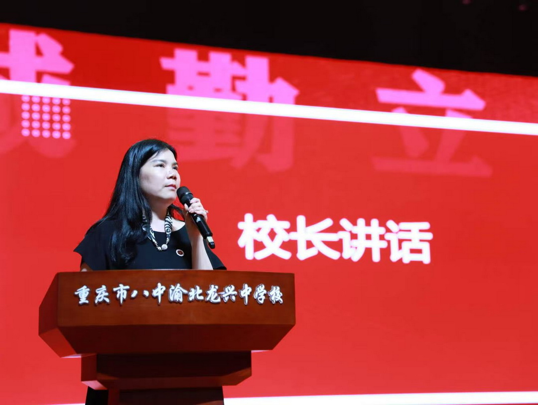 随后,重庆八中渝北龙兴中学校校长付英老师为启动仪式致辞。付校长的话语掷地有声,她鼓励同学们要发扬体育精神,在训练中磨砺意志,在比赛中超越自我。她强调,中考体育不仅是对同学们身体素质的考验,更是对他们意志品质的锻炼。付校长的致辞,让同学们深刻认识到了中考体育的重要性,也极大地鼓舞了他们的士气。