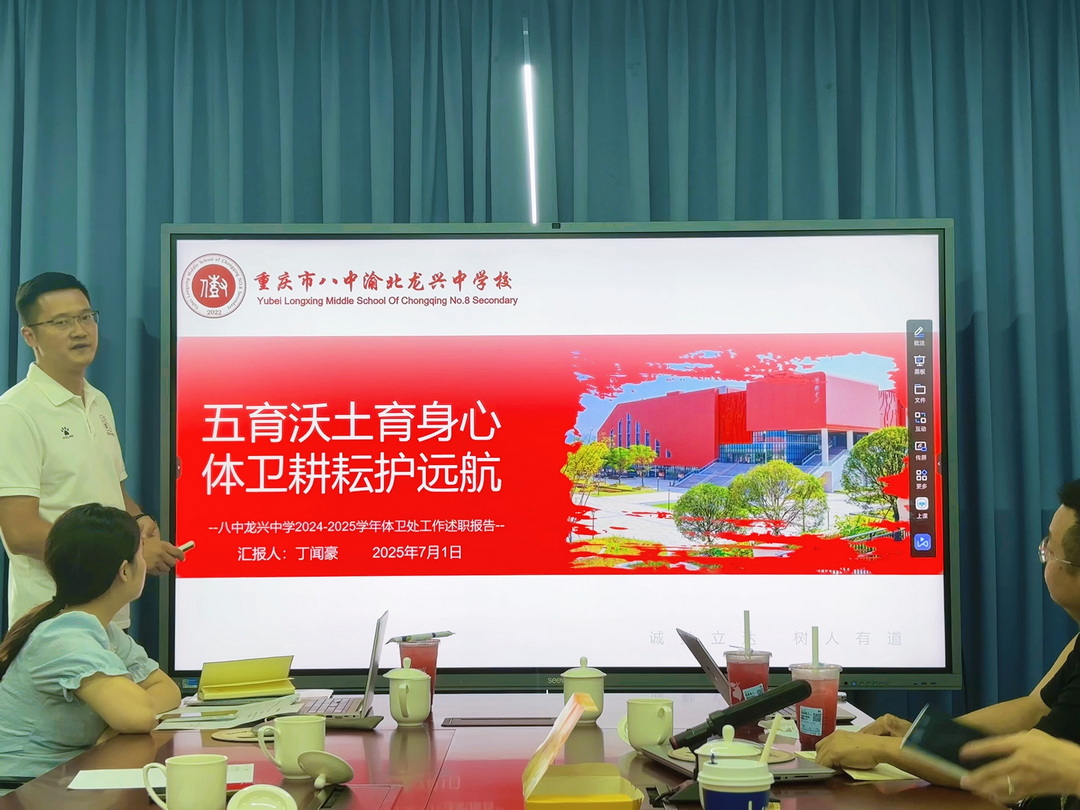 各部门管理工作汇报环节同样精彩纷呈。体卫处丁闻豪老师以“五育沃土育身心 体卫耕耘护远航”为主题,强调体育教学质量提升、运动场地科学规划及视力问题关注。