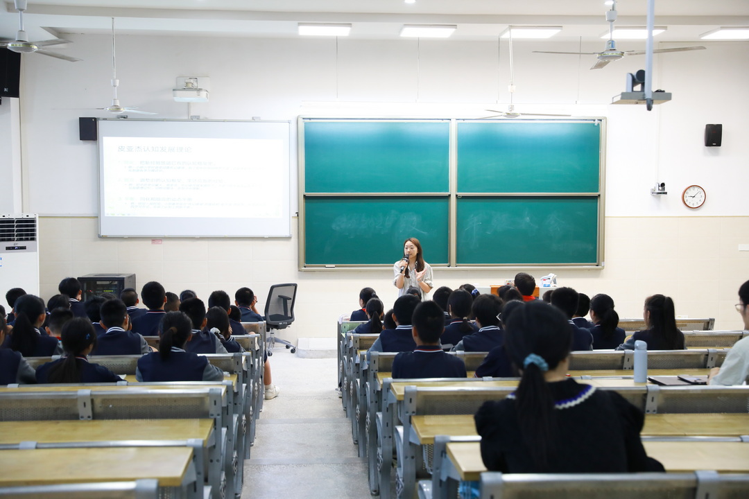 在正式讨论开始前,渝北校区陈鹏丞老师呈现了一节以“适应新环境”为主题的心理健康课。陈老师以“是否在人际交往、学业等方面遇到适应问题”为切入点,自然引出课程主题。随后,她引入皮亚杰的认知发展理论,帮助学生理解适应过程中可能出现的各类表现,并借助目标具体化的相关心理学实验,引导学生设计个人愿景板,建立起对初中生活的积极期待。观摩结束后,心理教研组老师围绕本节课的教学设计与实施展开了深入研讨。