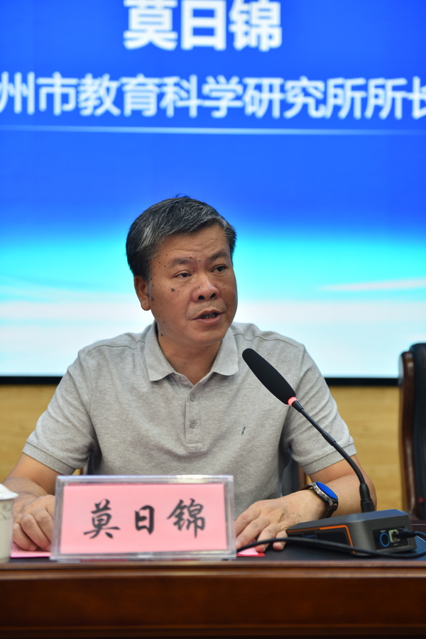 莫日锦为研讨会致辞,对远道而来的专家与同仁表示热烈欢迎和感谢,并对全市高三教师致以问候。他强调,重庆八中、南宁二中在高考备考方面的卓越成就,希望其能在备考策略、资源支持、教师培训等方面给予贺州全方位指导,并对参会教师提出三点期待:一是直接移用,善用优质资源;二是借鉴化用,实现融合创新;三是创新运用,探索贺州路径。最后呼吁各校凝聚智慧、共享资源,力争2026届高考取得优异成绩,推动贺州教育发展。
