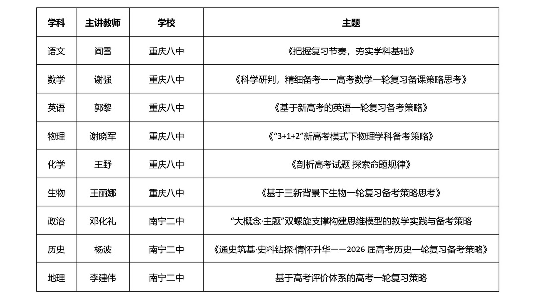 学科分论坛上,来自重庆八中、南宁二中的专家团队带来关于备考策略、复习节奏、命题解析等方面的精彩分享。通过案例分析、复习体系搭建、新教材解读等,为与会教师提供了清晰的教学路径和实操方法。