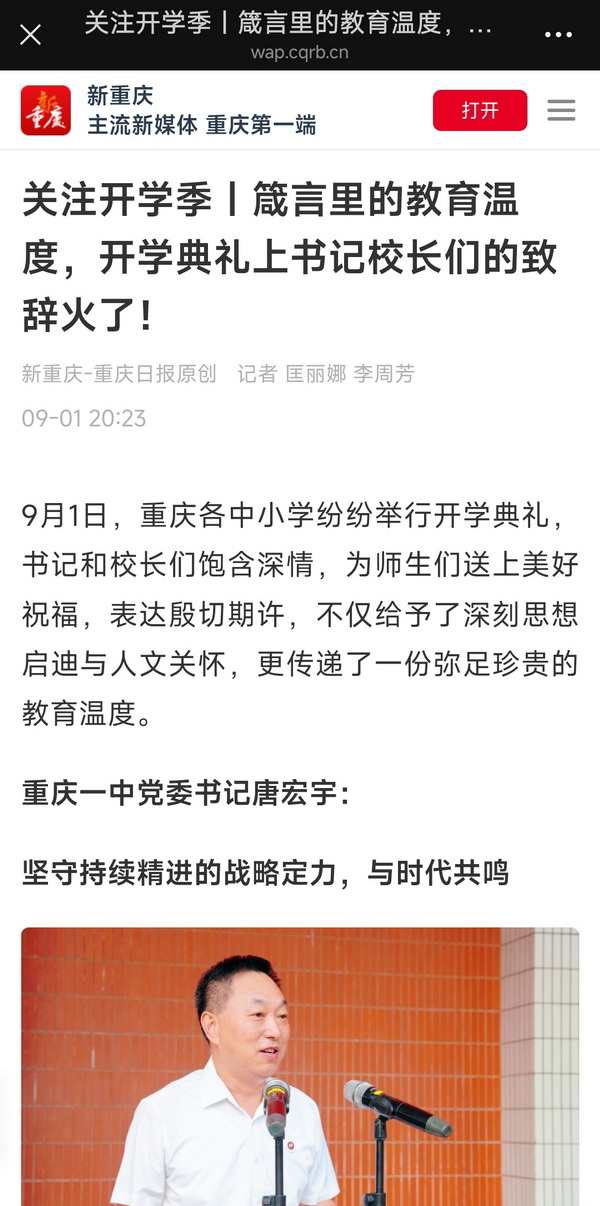 重庆日报——关注开学季|箴言里的教育温度,开学典礼上书记校长们的致辞火了!