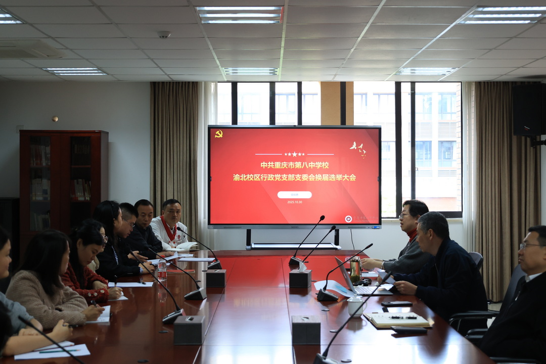 2025年10月30日下午,中共重庆市第八中学校渝北校区行政党支部换届选举大会暨10月主题党日在渝北校区行政楼5021党员活动室召开。大会严格遵循《中国共产党基层组织选举工作条例》要求,经过民主选举,姚瑶、李广和陈蜜三位同志当选新一届支部委员会委员。