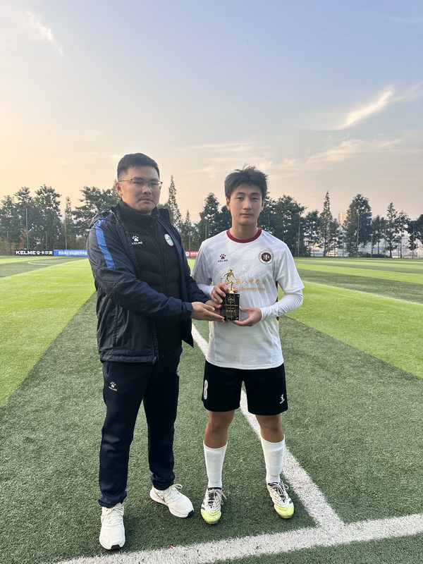 此外,我校队员张汀杭在本次赛事中表现尤为突出,无论是进攻端的突破射门、组织串联,还是防守端的积极回防,都展现出超高的竞技水平和大局观,凭借一系列关键发挥,成功荣获“本届赛事最佳球员”称号。此次夺冠,离不开教练组的科学指导、精准部署和辛勤付出,也离不开全体队员日复一日的刻苦训练、赛场上的奋勇拼搏以及团队间的默契协作。重庆八中U19足球队将以此为新的起点,再接再厉,不断打磨技术、提升竞技水平,在未来的赛事中再创佳绩,续写荣耀,为校争光!