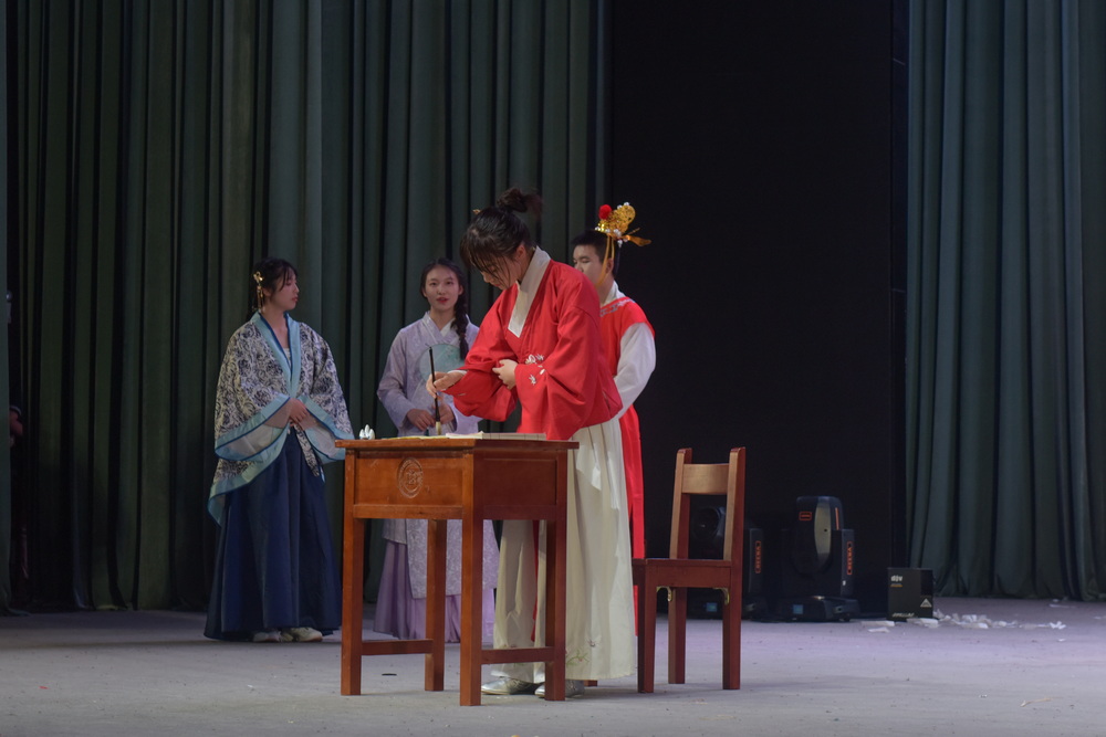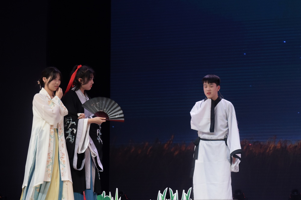 本次课本剧大赛分为四个大的主题,分别是“炽热的青春”、“伟大的悲剧”、“深刻的批判”、“历史的回响”、“不朽的红楼”。同学们的表演将凝固的文字变成了鲜活的剧本,一瞬间,仿佛窦娥对命运的叩问还在耳边,眼前还是哈姆雷特进行决斗时的刀光剑影。虽然不是专业的演员,但是同学们对剧本的领悟和对人物形象的塑造令人拍案叫绝!