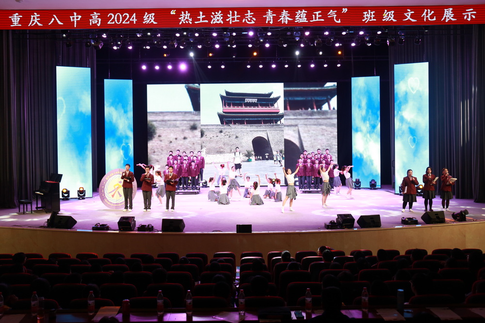 10月21日晚,重庆八中渝北校区高2024级在渝北校区大礼堂举行了以“热土滋壮志,青春蕴正气”为主题的班级文化展示活动。