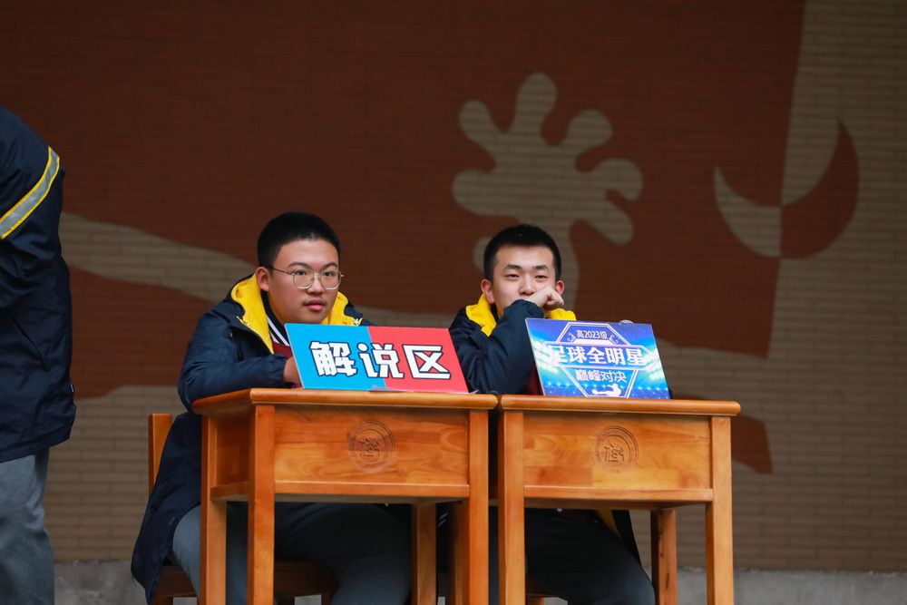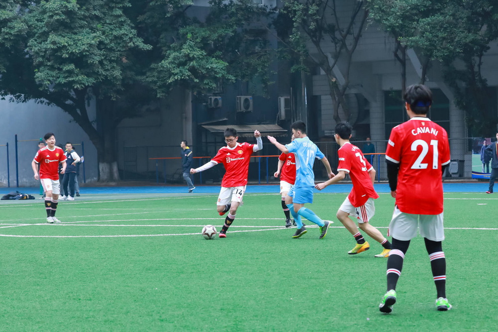 本次比赛由彭琨骅率领的蓝队“小龙坎曼城队”,迎战由黄实钜率领的红队“八中曼联队”。高2023级年级组长范兴波老师受邀为队员们开球,足球全明星赛拉开了帷幕。