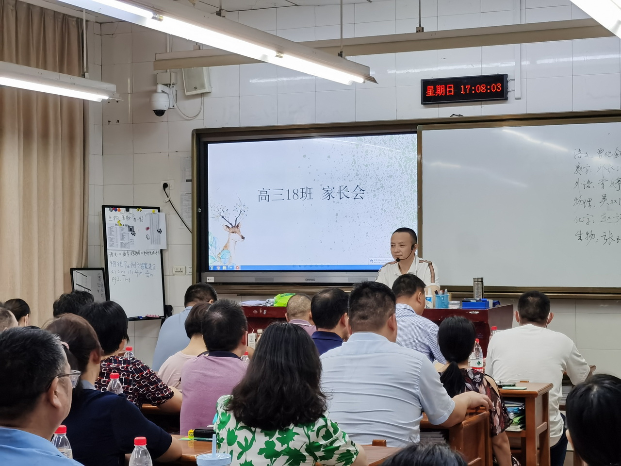 教务处主任李明老师同样感谢各位家长在炎炎暑气中前来参会。李主任苦口婆心地劝慰各位家长越是在高三时间,越要注重学生休息,不要以大量的补课安排压缩学生的空余时间,更不要鼓动学生一到家就开始学习,要让学生适当地放空与调整--家长要转换角色,不要以自己的焦虑负面影响学生,而是要正能量地与学生共同进步。家长也要配合、支持学校安排,与学校一起做好手机管理,敦促学生端正考风考纪......李明主任以其幽默风趣的话语引得现场家长听得入味,时时爆发阵阵笑声与掌声。