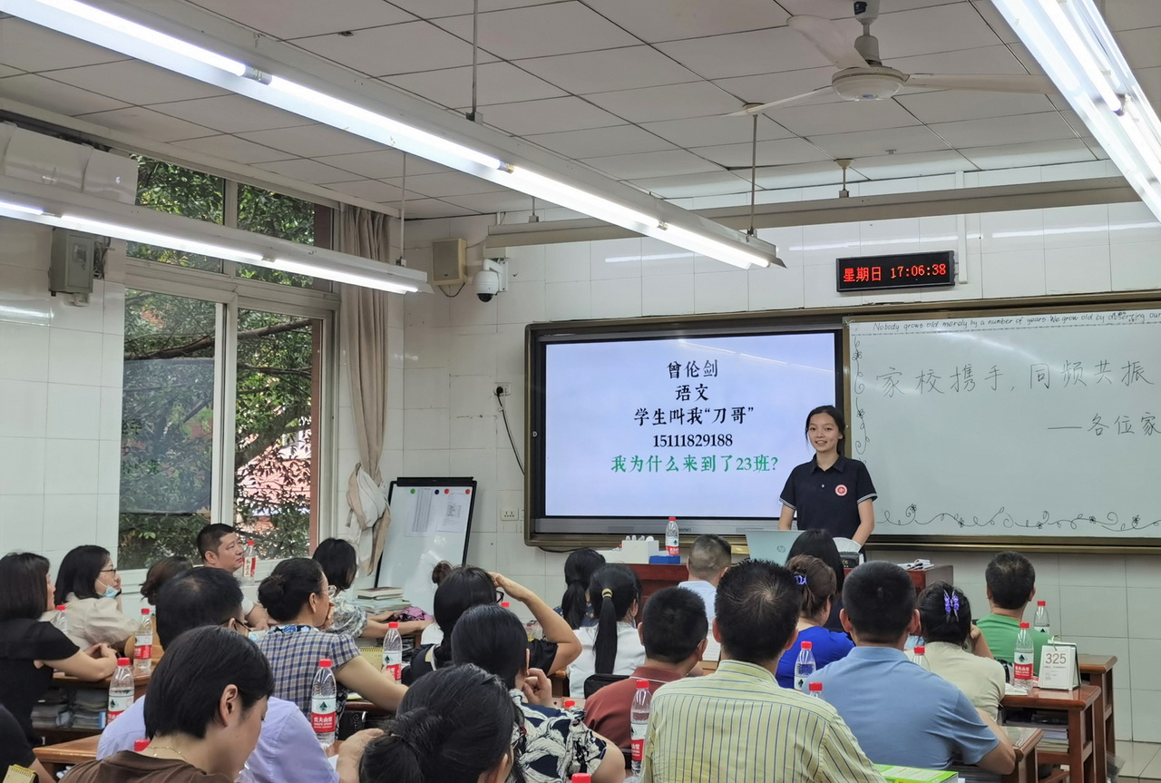 为强化家校沟通、促进家校联合教育,2022年7月17日下午14:30分,沙坪坝校区高2023级在大礼堂举行年级家长会。高2023级年级组长范兴波老师主持大会,全年级家长准时到校参会。