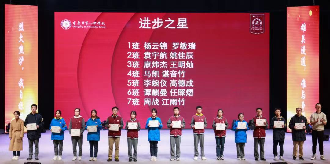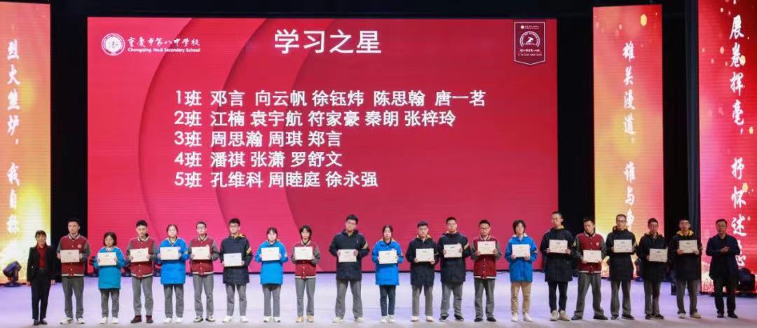 高三学习的列车已驶入正轨,开学以来的学习效果也迎来了检验。前潮澎湃,后浪奔涌,为表彰在月考中成绩优秀者、鼓励进步者,激发高三学子高昂的学习热情,营造良好的学习氛围,10月26日下午6点,重庆八中渝北校区高2023级在大礼堂成功举办第二次月考表彰大会。重庆八中副校长张泽勇老师、在年级的干部及全体班主任、学生参加此次表彰大会。