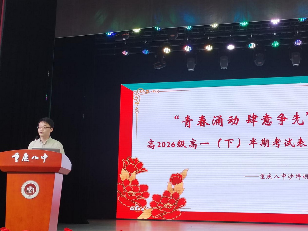 为鼓励先进,树立榜样,2024年4月29日,重庆八中沙坪坝校区高2026级于大礼堂隆重举行2023-2024学年春季学期半期表彰大会。