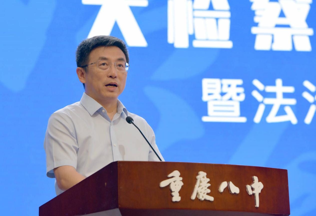 重庆市人民检察院党组书记、检察长时侠联主讲法治大讲堂。学校供图 华龙网发
