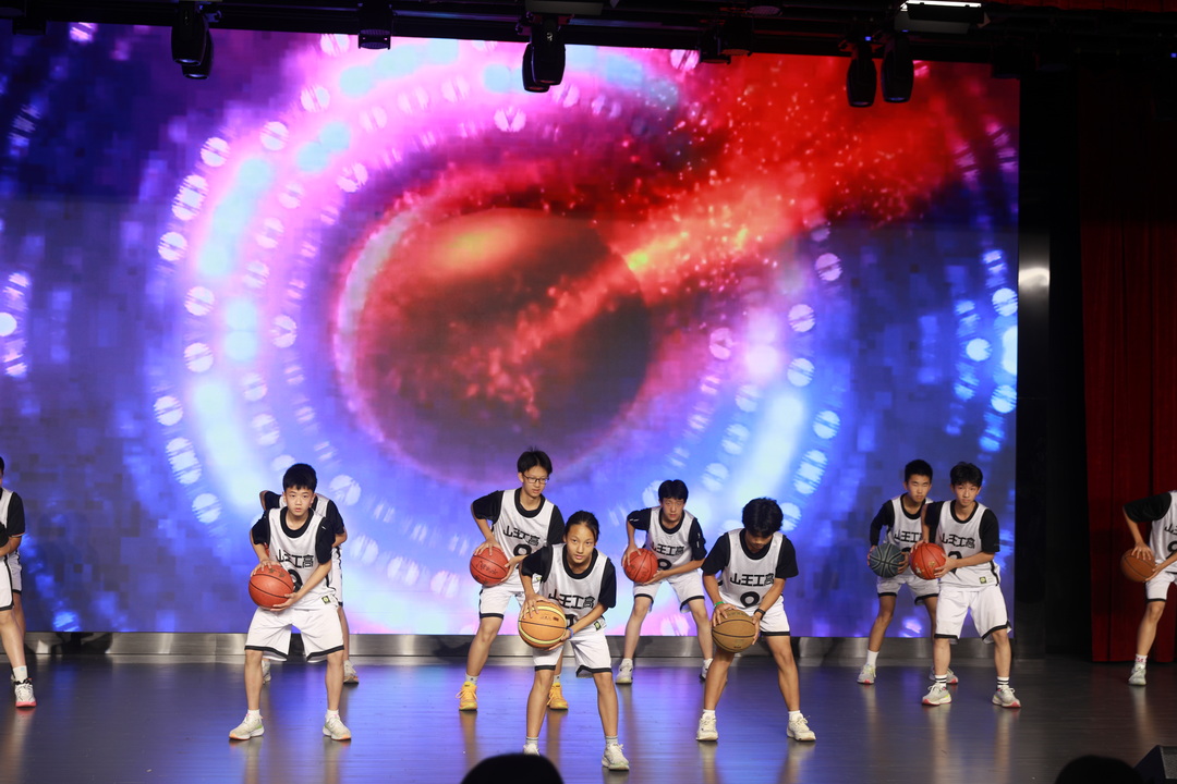 仪式结束后,社团展演环节将活动推向高潮。展演在国旗社精彩的队列展示中拉开序幕;手工社的《伞扇发光》以翩跹舞姿诠释青春力量;篮球社的《灌篮高手》以矫健身姿演绎热血激情,彰显永不言败的体育精神;礼仪社的《蓝天礼韵》以优雅仪态演绎文明之美,传递知礼明德的青春涵养;播音主持社《越狱的夏天》用妙语连珠引爆全场笑声,用幽默智慧演绎青春的多彩篇章。