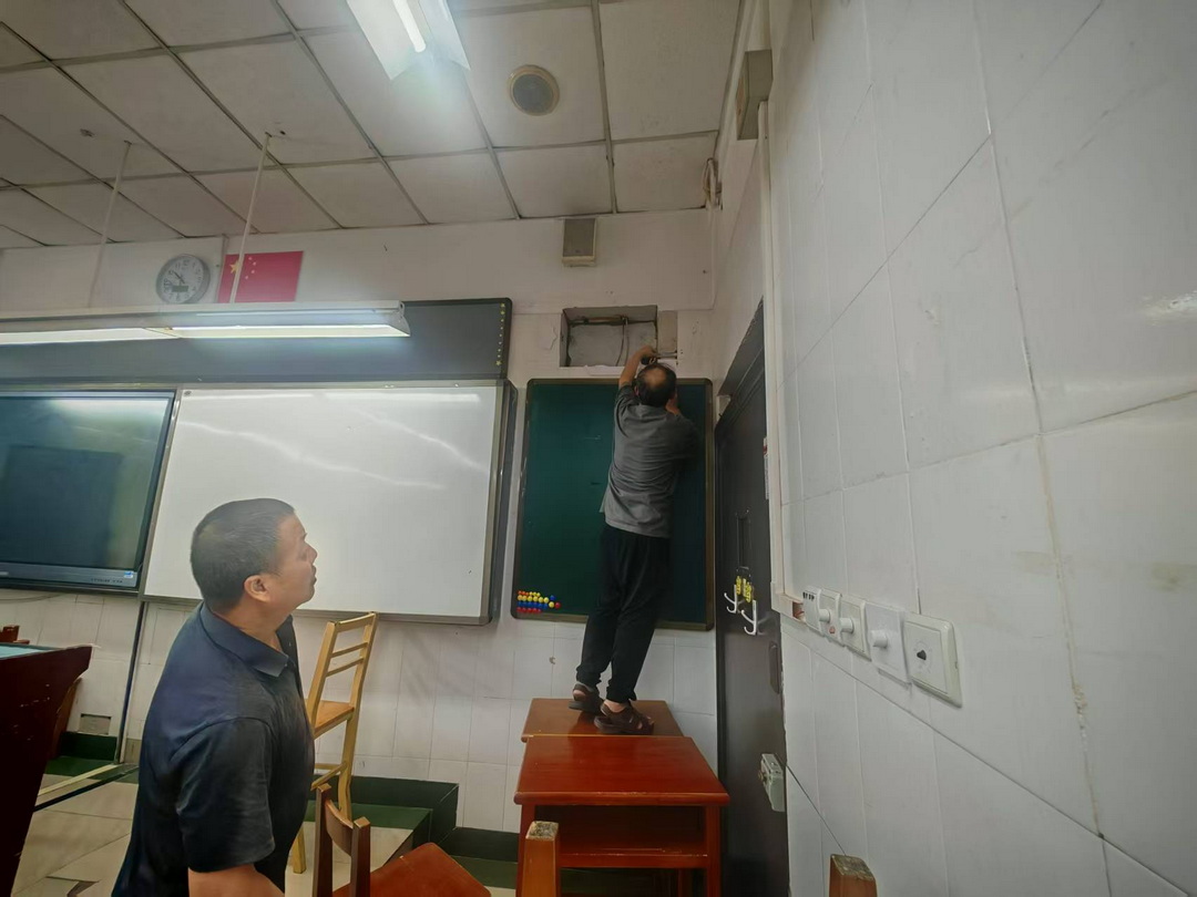 教室是知识传播的殿堂,后勤维修师傅们深知其重要性。他们穿梭于各个教室,仔细检查每一盏灯、每一张桌椅。电工师傅站在梯子上,专注地维修或更换损坏的灯具,确保明亮的灯光能照亮学生求知的道路;维修师傅则认真地对课桌椅进行加固、修复,让同学们能在舒适的环境中学习。