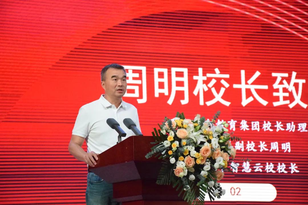 周明校长致辞表示,教育的形式正在发生深刻变革,但教育的本质历久弥坚——那就是启迪智慧、塑造灵魂、成就梦想。重庆八中智慧云校是八中顺应时代发展,为了将优质的教育资源惠及更广大学子而搭建的重要平台。他强调,选择云校,意味着选择了以一种更加自主、更加灵活的方式去探索知识的海洋,并对学子们提出4点期望:一是无畏挑战,勇于探索;二是善于学习,独立思考;三是自律自强,笃行不怠;四是志存高远,心怀家国。同时,叮嘱老师们做好指导者与守护人,最后祝师生在新学期书写属于自己的新篇章。