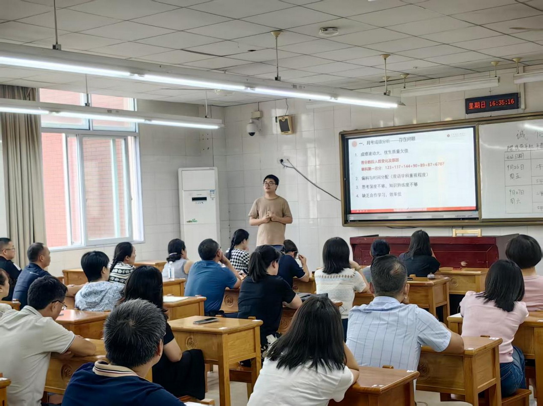 下午四点,集中会议结束后,家长们移步至各班教室,参加由班主任主持的班级家长会。各班班主任就高三开学以来的班级工作、复习状态向家长作了汇报,结合第一次月考情况分析了班级学情,指出当前复习阶段存在的问题,并提出了下一阶段的班级发展规划。部分科任老师也走进教室,与家长见面交流,介绍了各学科的学习现状与具体要求。