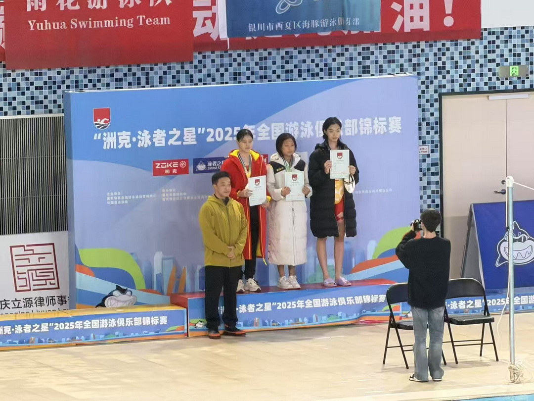 在为期两天的激烈角逐中,重庆八中宏帆中学选派的裴雯萱、张颢腾、苏谨翾三名运动员凭借扎实的训练功底、顽强的竞技意志,在众多强手中脱颖而出,交出了一份亮眼的成绩单!其中,苏谨翾同学表现尤为突出,在女子100米蛙泳、女子50米蛙泳两个单项中强势夺金,更携手队友在4×50米混合泳、4×50米自由泳接力项目中勇攀高峰,一人独揽四块金牌,成为赛场上最耀眼的“多金王”;裴雯萱同学展现出稳定的竞技状态,分别斩获女子50米自由泳第三名、女子100米仰泳第三名,两枚铜牌彰显实力;张颢腾同学在男子50米蛙泳项目中奋力冲刺,最终以优异成绩拿下第三名,为学校再添一枚奖牌。此次赛事,宏帆中学代表队共计收获4金3铜,7枚奖牌的丰硕成果,充分展现了学校游泳项目的育人成效与青少年运动员的蓬勃朝气。