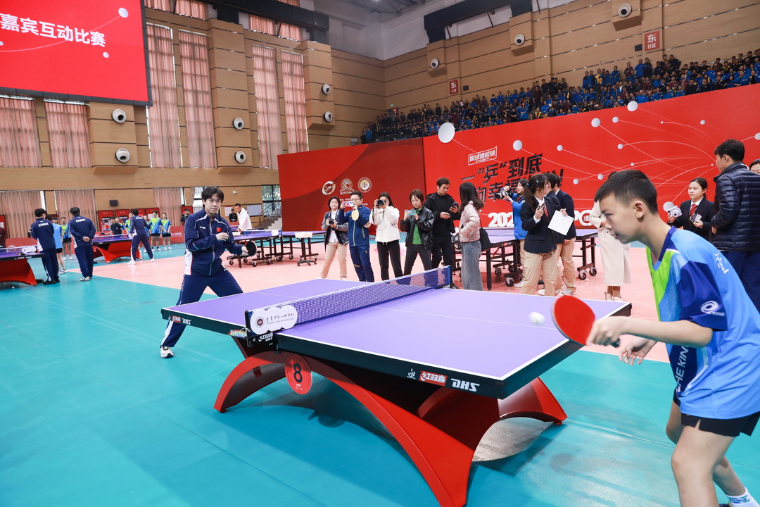 “国乒队员是赛场上的王者,但今天他们更像是亲切的大哥哥。”现场参与互动的我校学生龚静思感慨道,此次互动不仅是一次球技的切磋,更是一次体育精神的传承,国乒队员们的专注与拼搏,让她更加坚定了追逐梦想、奋勇前行的信念。